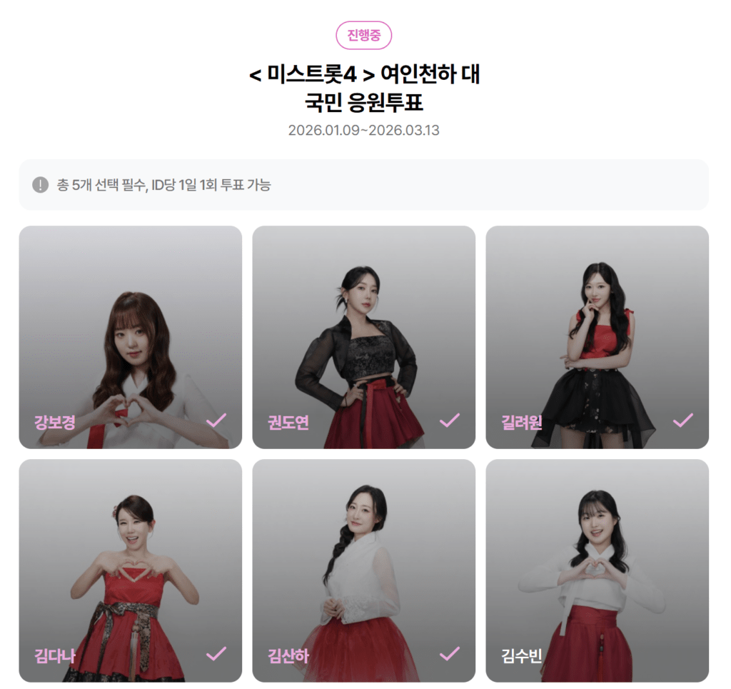 ✔️ 온라인·문자 투표로 좋아하는 참가자를 응원하시기 바랍니다.