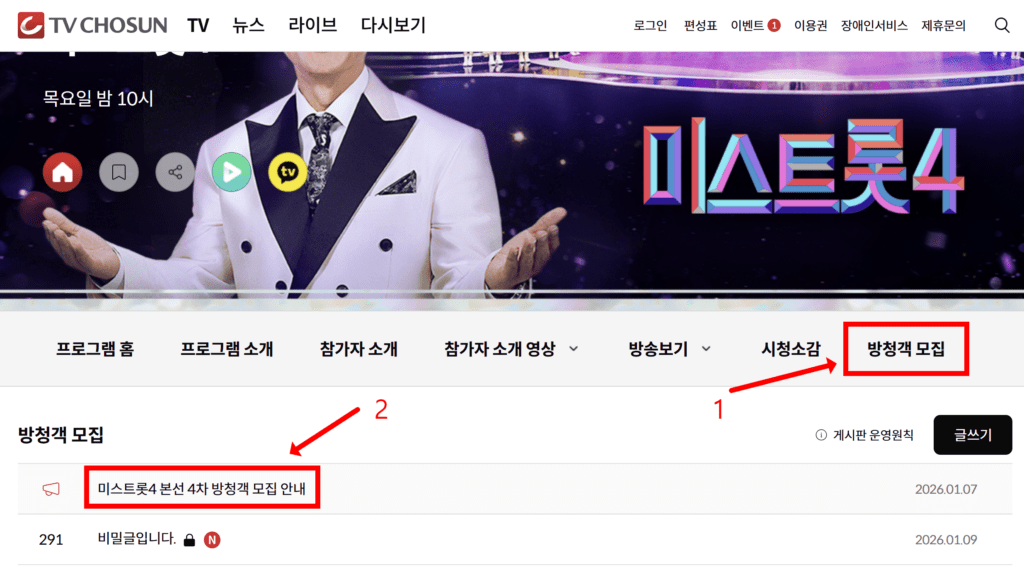 🎟️ 미스트롯4 방청신청 방법 (2026년 1월 녹화분)